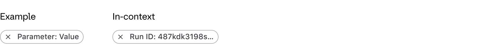 The text rendered within the Tag uses a standardized format depending on the type of filter and the method: